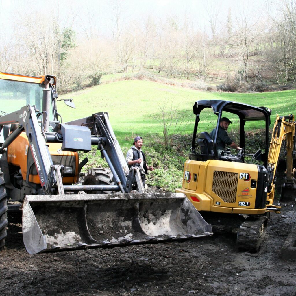 Dernièrement Loïc et Thibaut, les employés communaux ont exécuté des travaux d’approche et de nettoyage autour de la Fontaine Arribas. À savoir, des travaux de terrassement sur trois côtés, nécessitant le redimensionnement et l’arasement des abords afin d’inverser le sens d’écoulement des eaux de ruissellement. Profitant des remues de terrain les pierres susceptibles de servir pour la restauration des murets ont été triées et mise de côté. L’abreuvoir de construction moderne a fait l’objet d’un grand nettoyage. Le trop-plein des eaux qu’il reçoit de par son talus sera dirigé vers un fossé longeant le chemin. Côté Est, reste un talus constitué des pierres diverses dont certaines sont de même constitution que celles des murets de la fontaine et qui seront triées. Restera ensuite à protéger du piétinement des animaux et alléger la dalle de schiste qui constitue la toiture de cet ouvrage fort ancien. Les travaux de restauration pourront débuter.